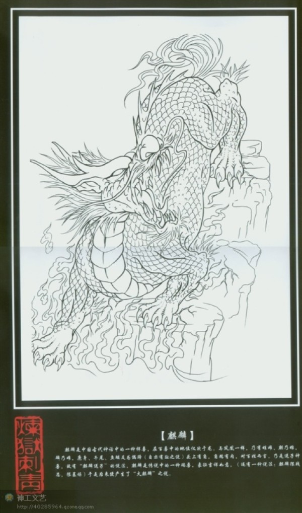 龙纹身手稿_一组老传统黑灰龙手稿纹身图案