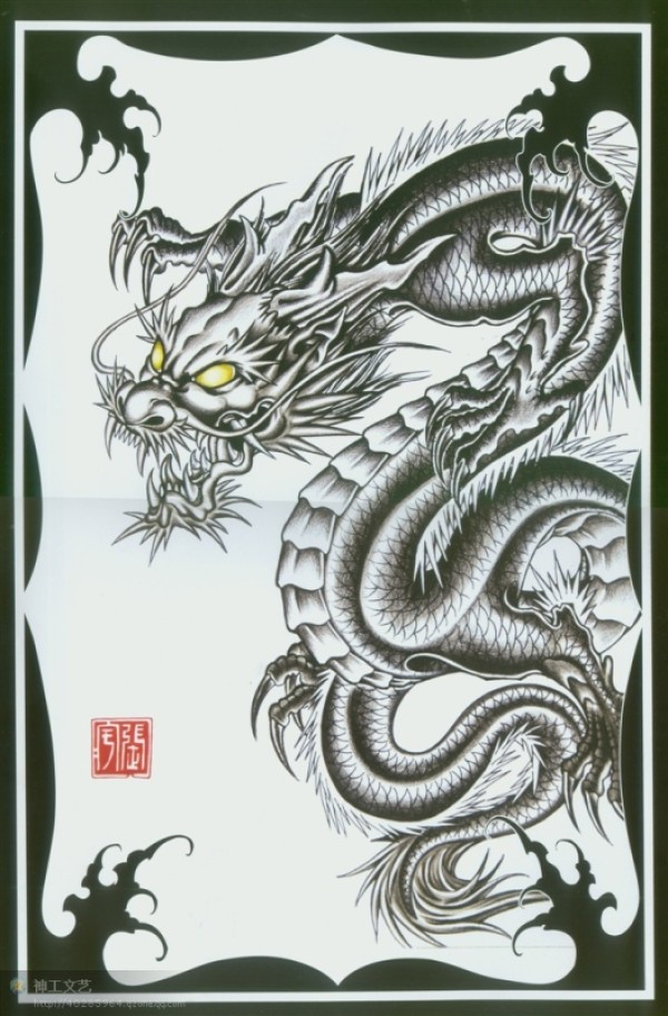 龙纹身手稿_一组老传统黑灰龙手稿纹身图案