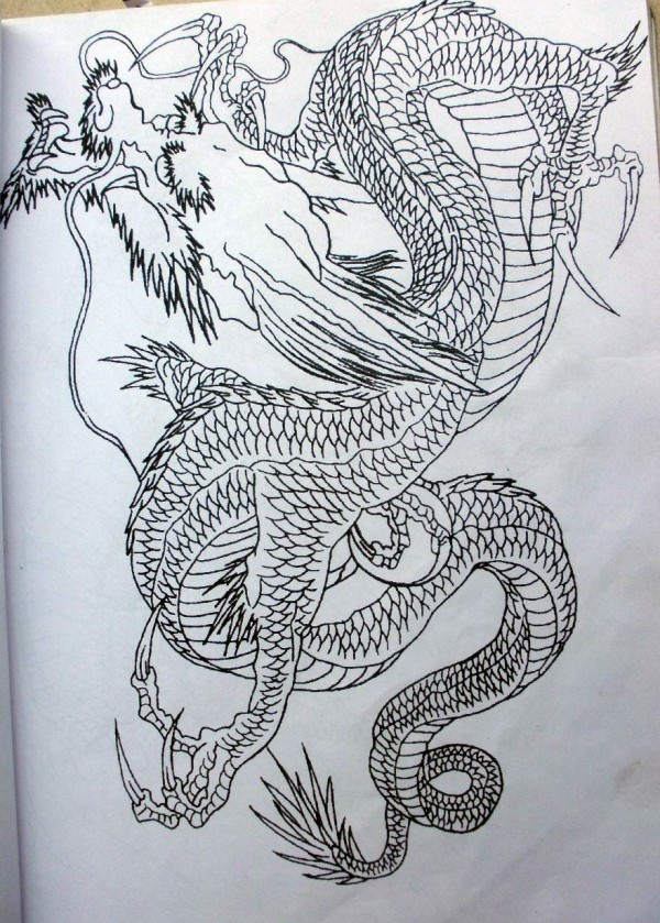 龙纹身手稿_一组老传统黑灰龙手稿纹身图案