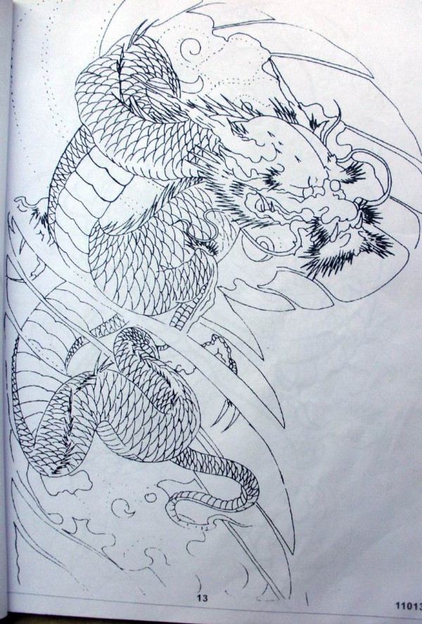 龙纹身手稿_一组老传统黑灰龙手稿纹身图案