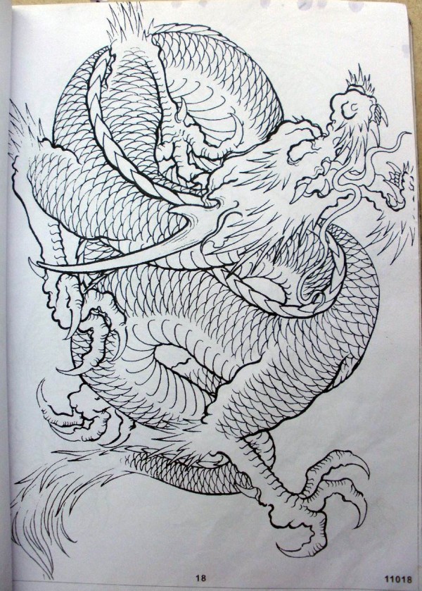 龙纹身手稿_一组老传统黑灰龙手稿纹身图案