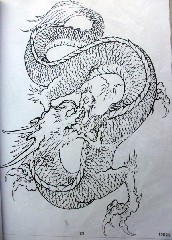 龙纹身手稿_一组老传统黑灰龙手稿纹身图案