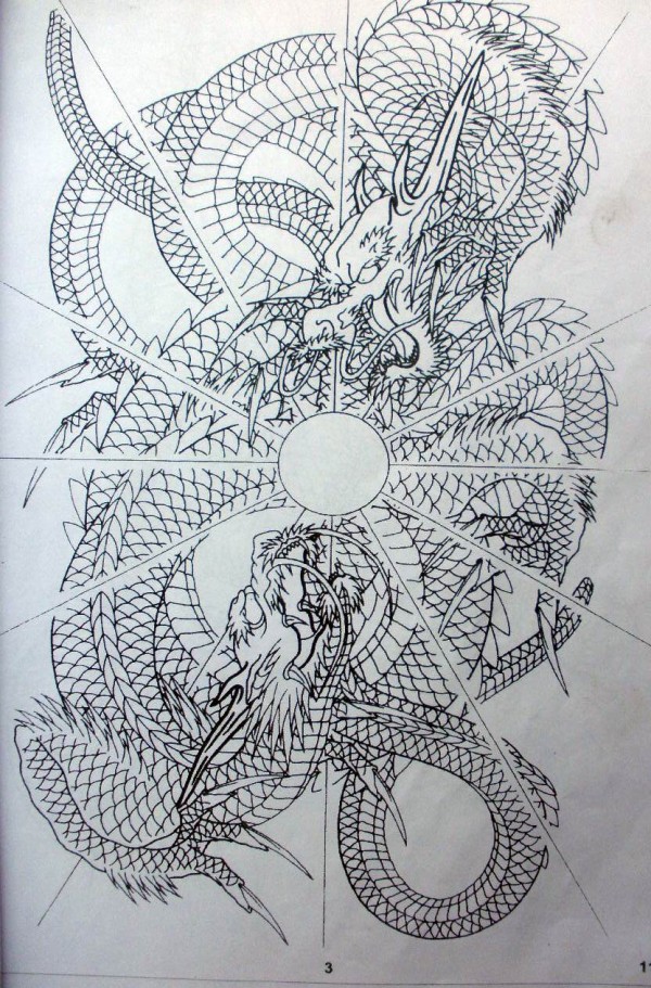 龙纹身手稿_一组老传统黑灰龙手稿纹身图案