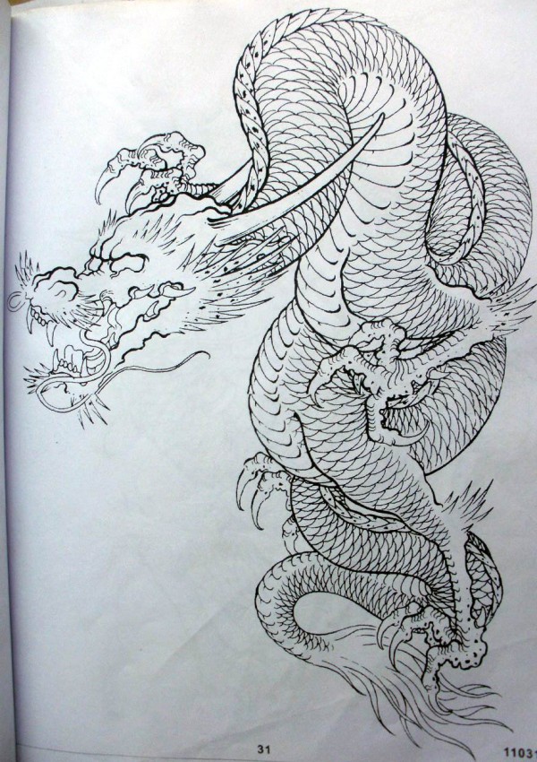 龙纹身手稿_一组老传统黑灰龙手稿纹身图案