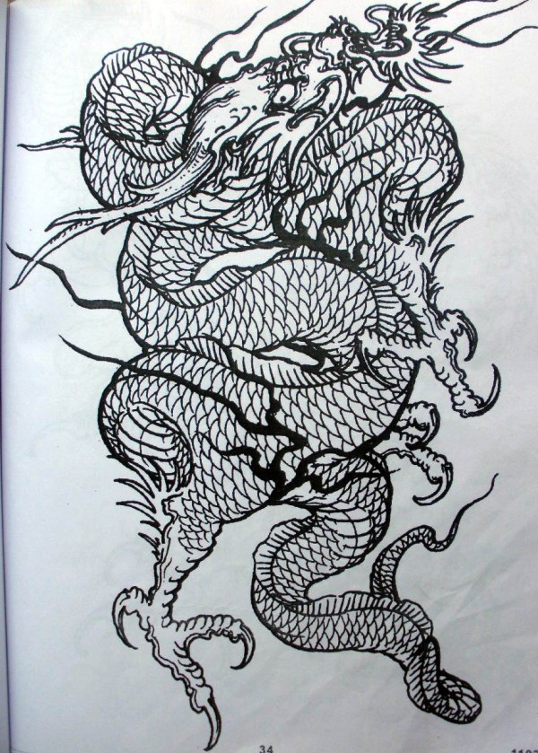 龙纹身手稿_一组老传统黑灰龙手稿纹身图案