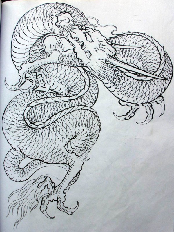 龙纹身手稿_一组老传统黑灰龙手稿纹身图案