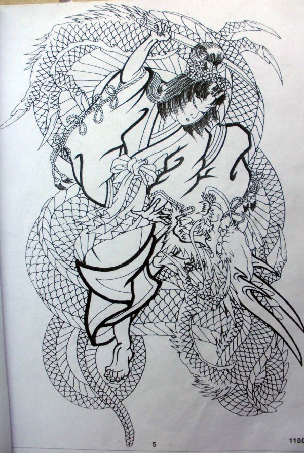 传统艺妓般若纹身图案手稿