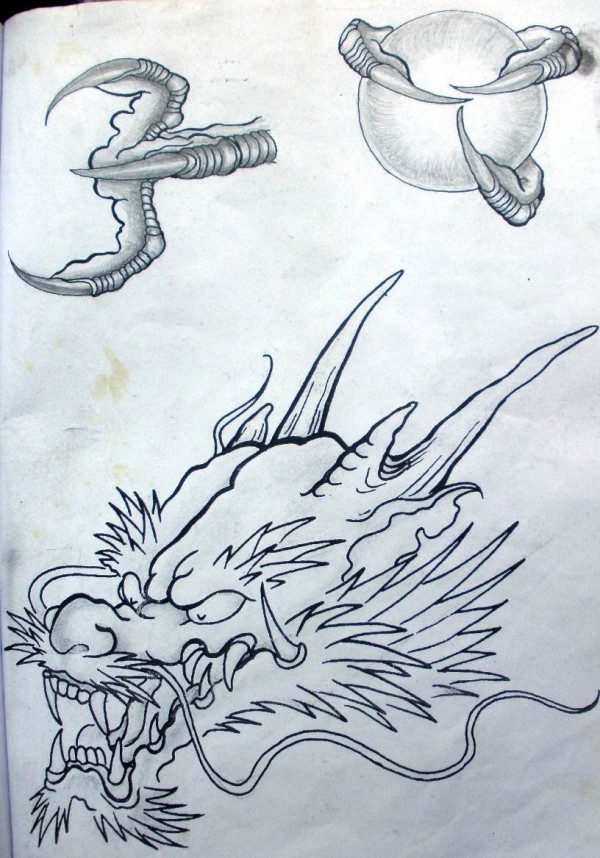 龙纹身手稿_一组老传统黑灰龙手稿纹身图案