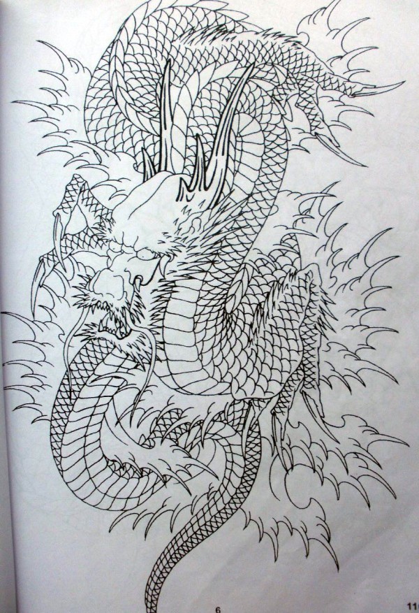 龙纹身手稿_一组老传统黑灰龙手稿纹身图案