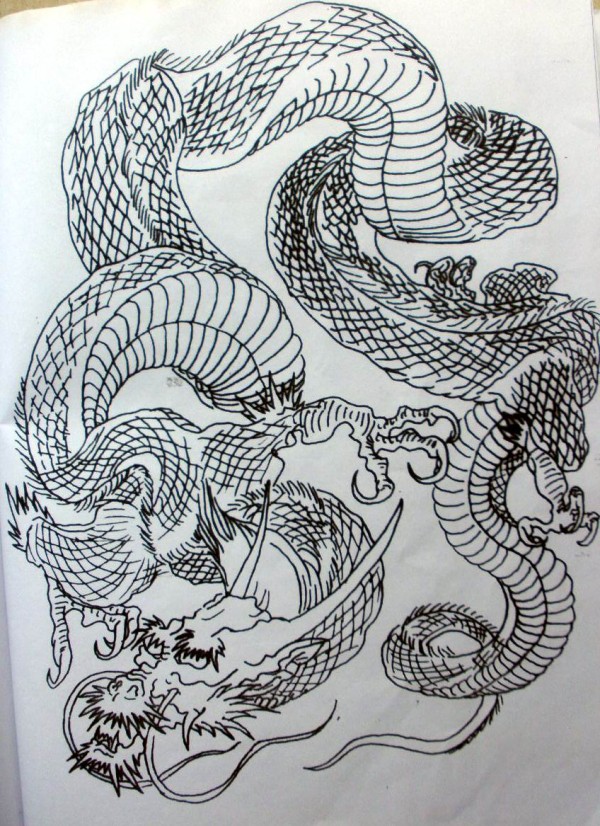龙纹身手稿_一组老传统黑灰龙手稿纹身图案