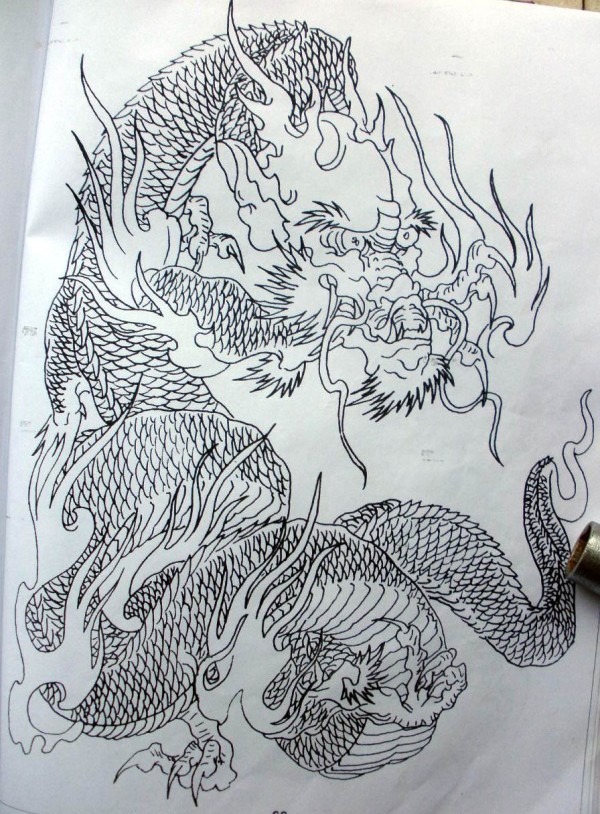 龙纹身手稿_一组老传统黑灰龙手稿纹身图案
