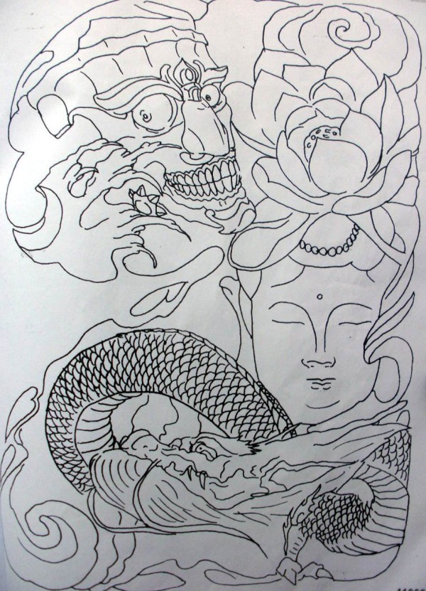 龙纹身手稿_一组老传统黑灰龙手稿纹身图案