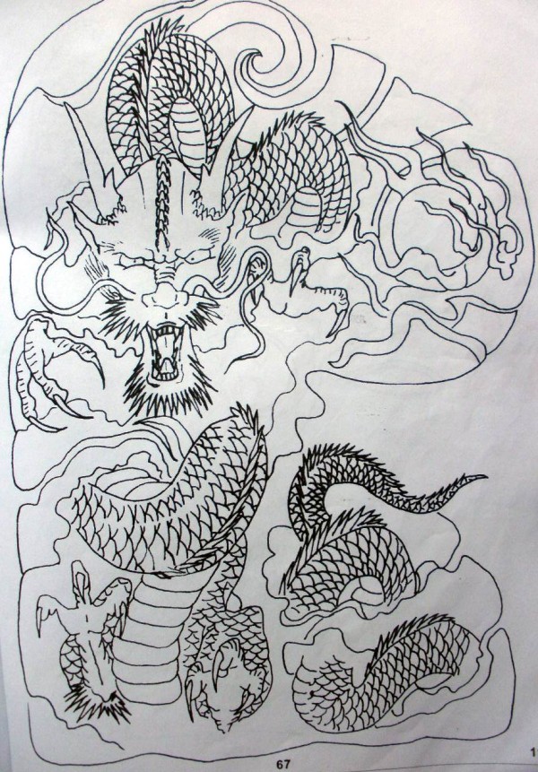龙纹身手稿_一组老传统黑灰龙手稿纹身图案