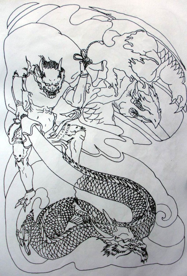 龙纹身手稿_一组老传统黑灰龙手稿纹身图案