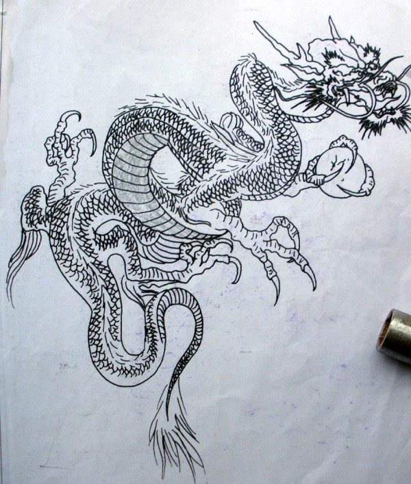 龙纹身手稿_一组老传统黑灰龙手稿纹身图案