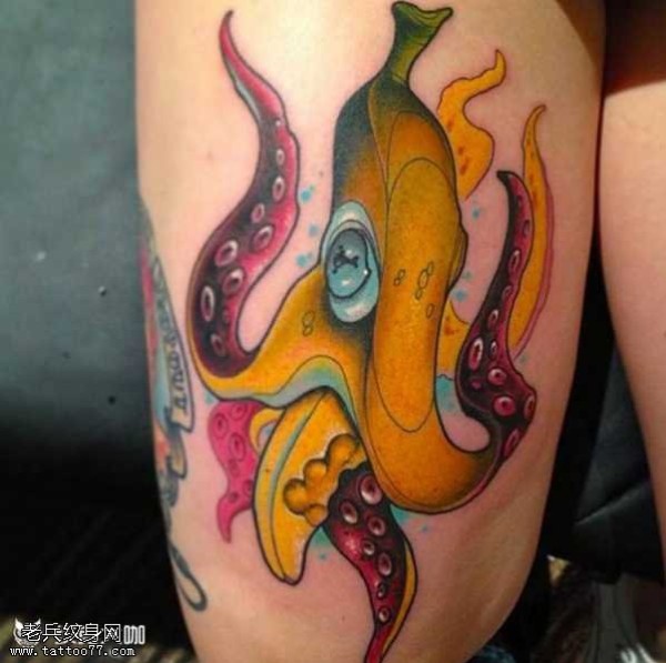 腿部章鱼纹身图案
