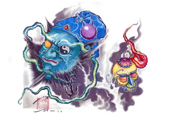 传统艺妓般若纹身图案手稿