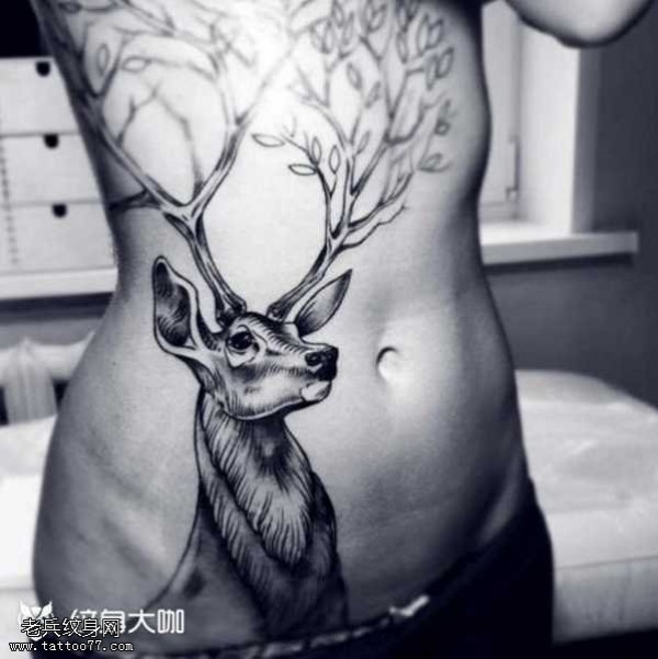 分享一款腰部时尚性感的蝶恋花纹身图案_腰部纹身图案大全_纹身图吧