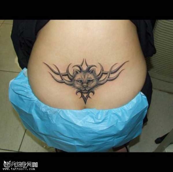 女生后腰纹身黑白灰风格抽象线条纹身图案