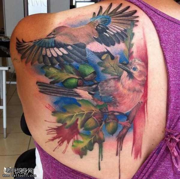 女生肩花纹身_15张女性双肩对称的肩花纹身图案作品图片