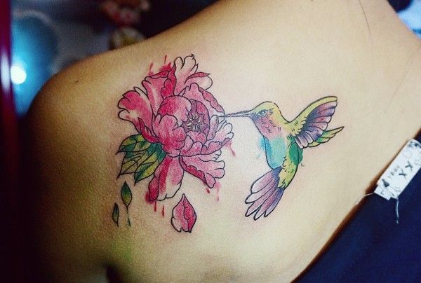 小燕子叼花的后背个性纹身图案