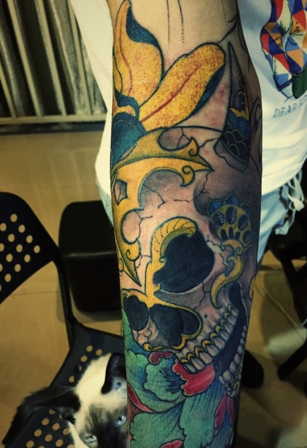个性另类的花臂骷髅纹身图案