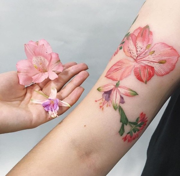 清新花朵腿部纹身图案图片_植物纹身图案大全_纹身图吧