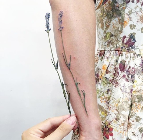 和实物非常相似的手臂花朵纹身图案
