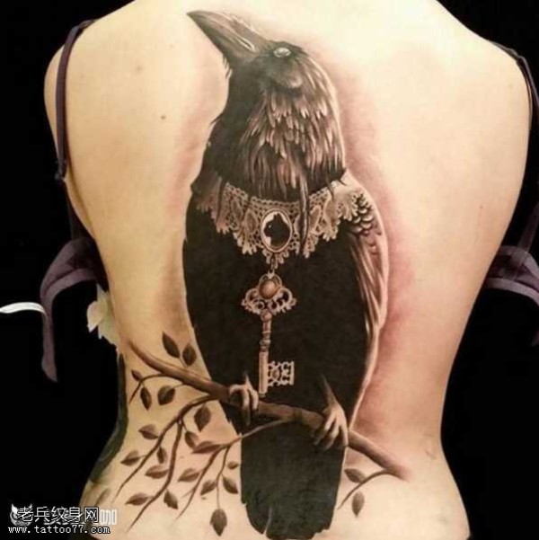 背部小乌鸦纹身图案