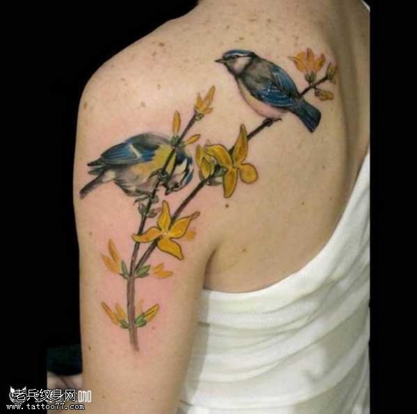 女生肩花纹身_15张女性双肩对称的肩花纹身图案作品图片