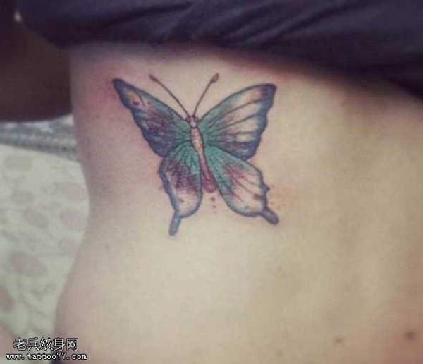 分享一款腰部时尚性感的蝶恋花纹身图案_腰部纹身图案大全_纹身图吧