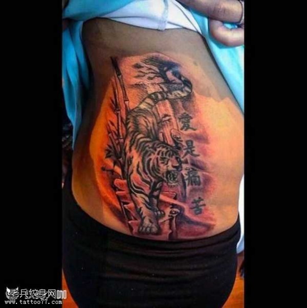 侧腰霸气老虎头纹身_腰部纹身图案大全_纹身图吧