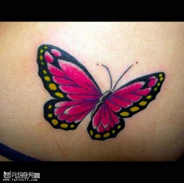分享一款腰部时尚性感的蝶恋花纹身图案_腰部纹身图案大全_纹身图吧