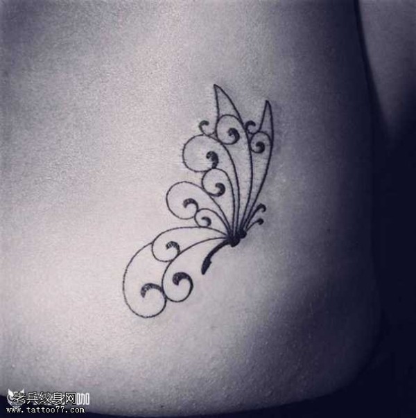 女生后腰纹身黑白灰风格抽象线条纹身图案