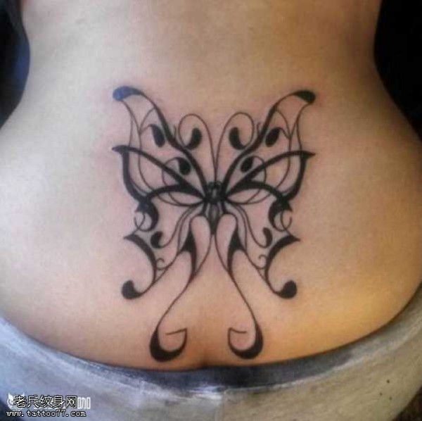 分享一款腰部时尚性感的蝶恋花纹身图案_腰部纹身图案大全_纹身图吧