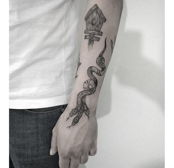 手臂莲花蛇纹身图案_臂部纹身图案大全_纹身图吧