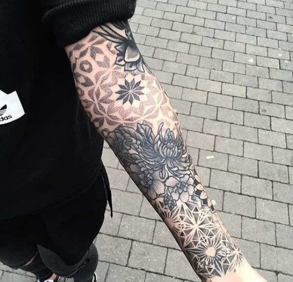 漂亮的黑色点刺几何图形装饰花纹身图案来自马特