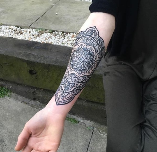 漂亮的黑色点刺几何图形装饰花纹身图案来自马特