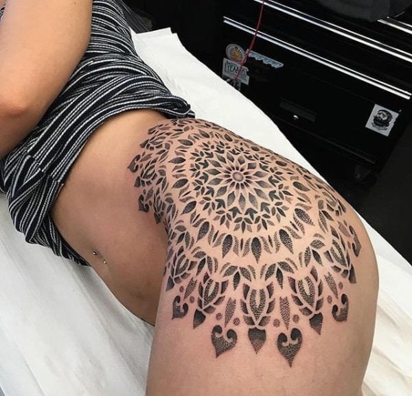 漂亮的黑色点刺几何图形装饰花纹身图案来自马特