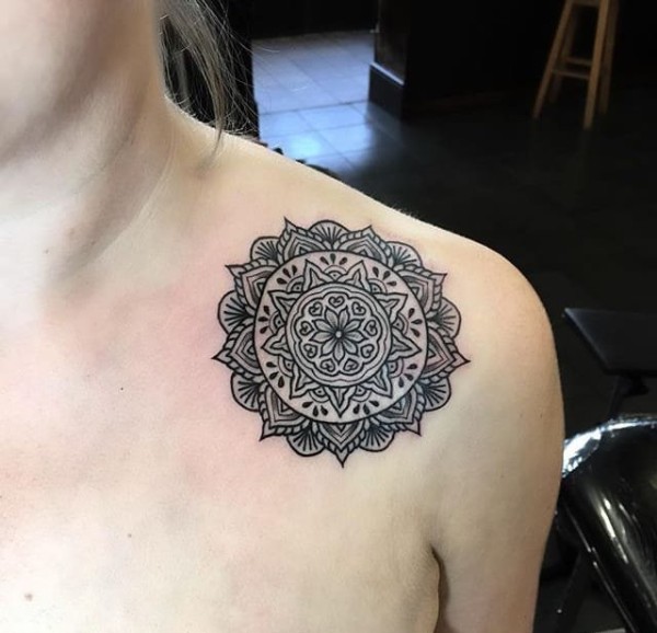 漂亮的黑色点刺几何图形装饰花纹身图案来自马特