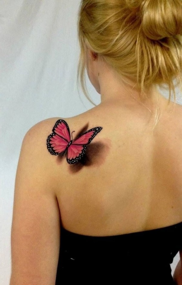 女性肩膀上漂亮的3D蝴蝶纹身图片