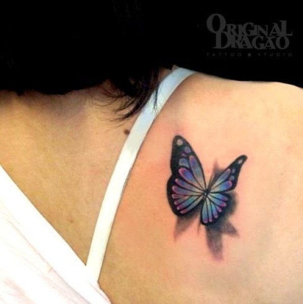 女性肩膀上漂亮的3D蝴蝶纹身图片