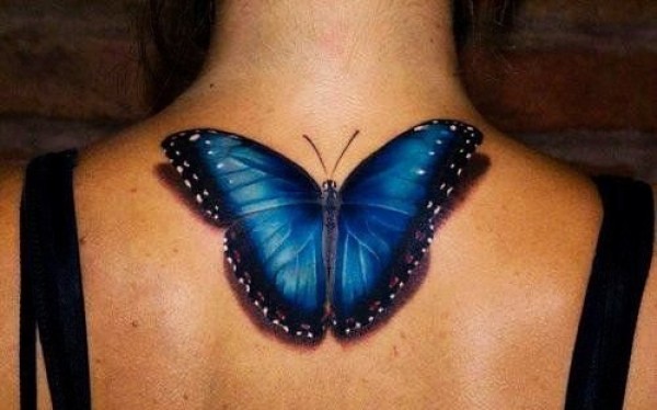 女性肩膀上漂亮的3D蝴蝶纹身图片