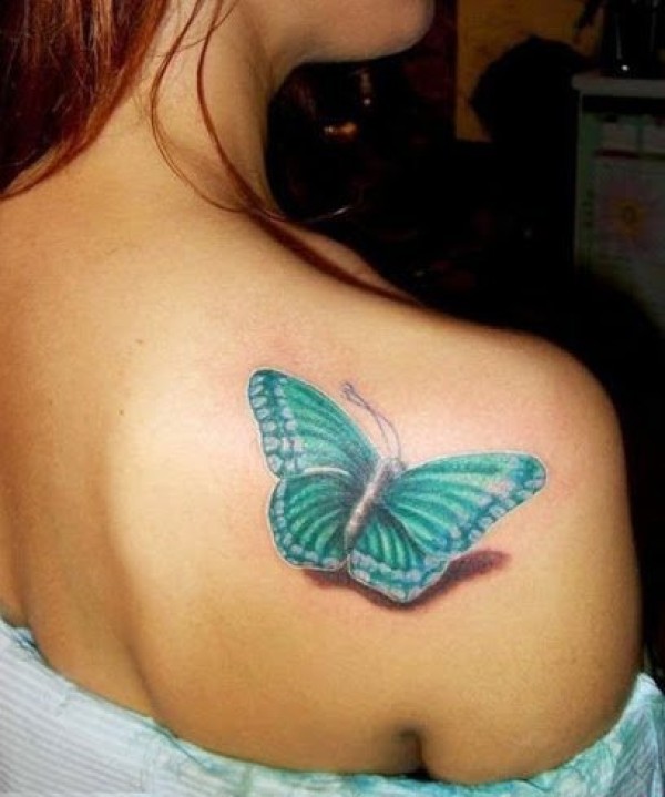 女性肩膀上漂亮的3D蝴蝶纹身图片