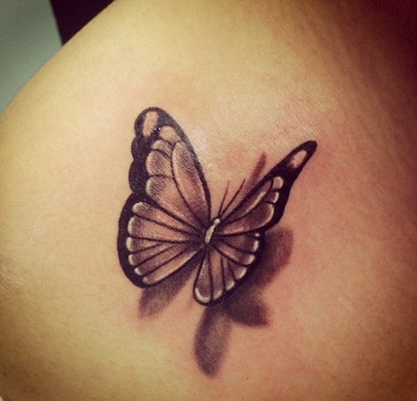 女性肩膀上漂亮的3D蝴蝶纹身图片