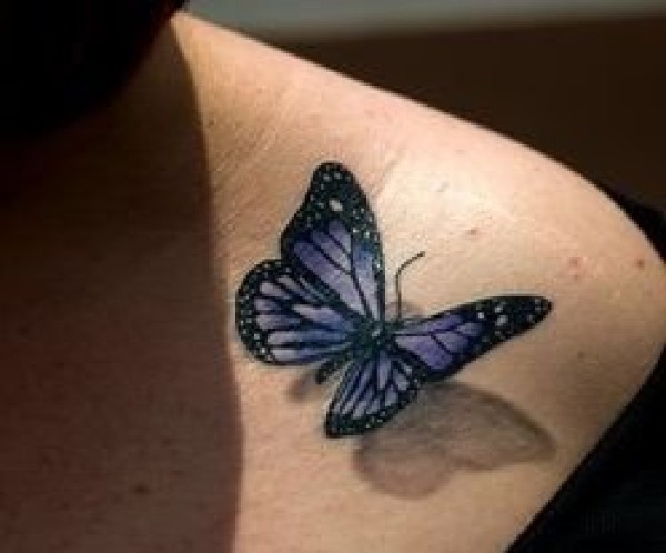 女性肩膀上漂亮的3D蝴蝶纹身图片