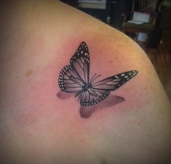 女性肩膀上漂亮的3D蝴蝶纹身图片