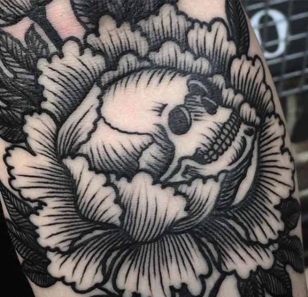 男人大臂黑白彼岸花骷髅_黑白纹身图案大全_纹身图吧