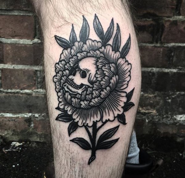 男人大臂黑白彼岸花骷髅_黑白纹身图案大全_纹身图吧