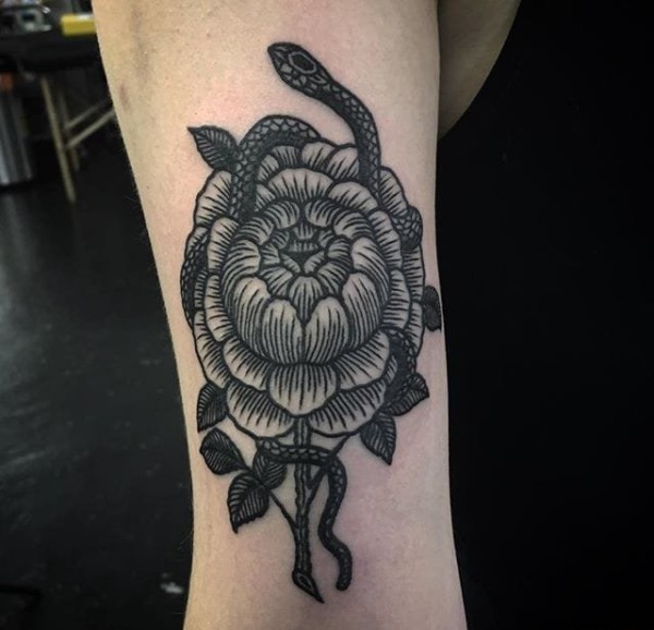 男人大臂黑白彼岸花骷髅_黑白纹身图案大全_纹身图吧